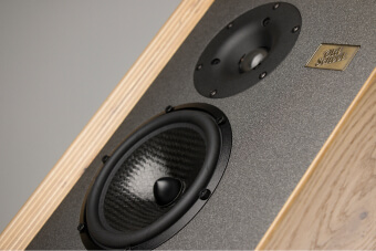 Old School Hobby speakers are equipped with custom made according to our specifications drivers. The fabric dome of 30mm tweeter is impregnated for additional rigidity and reduced unwanted resonance. Treble driver is placed in the waveguide flange shaped as shallow horn which accounts for the better dispersion. Low-mass moving coil motor of the tweeter has an impressively agile way with transients, making the overall sound rhythmical and precise. Compact 4-inch mid/bass driver equipped with Balanced Drive technology motor ensuring low distortion.
